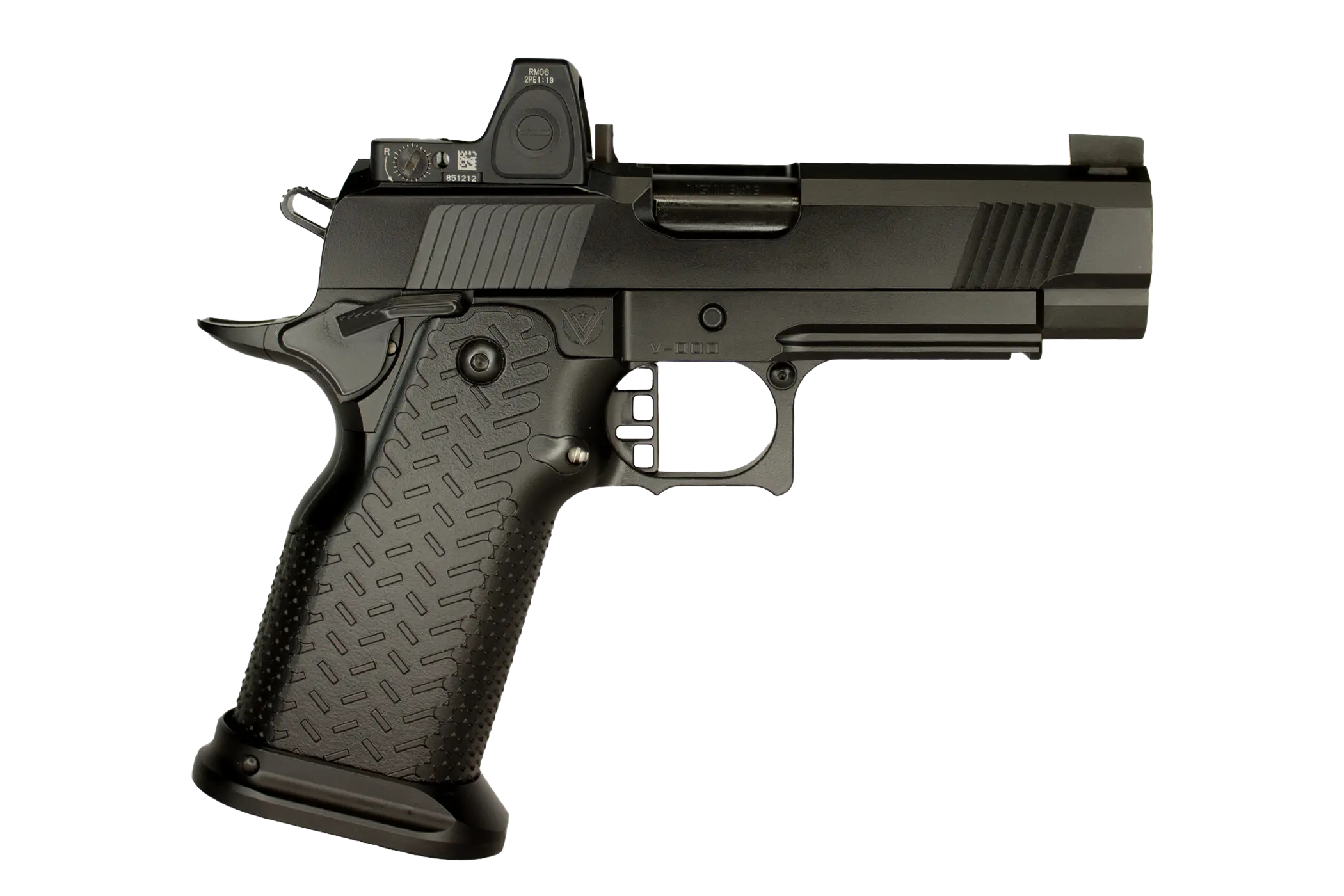 Staying true to our rimfire roots, the target .22lr is of the highest standard. This pistol will shoot Sub 1 inch at 50 yards with match ammo, or it doesnt ship. The target .22lr has its own, proprietary adjustable sights, slide mounted optic ready pic rail and ships with two magazines.