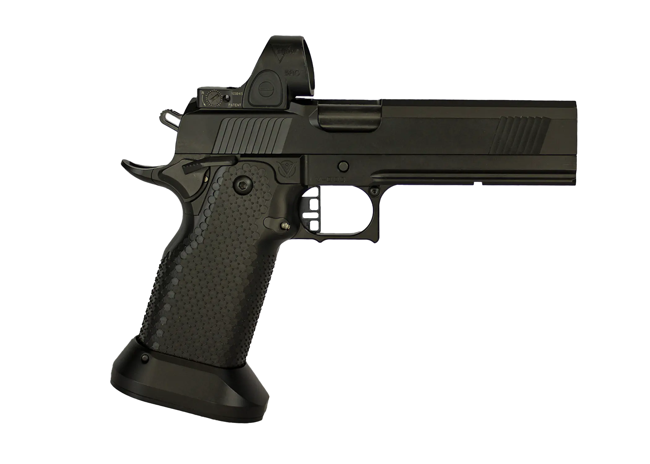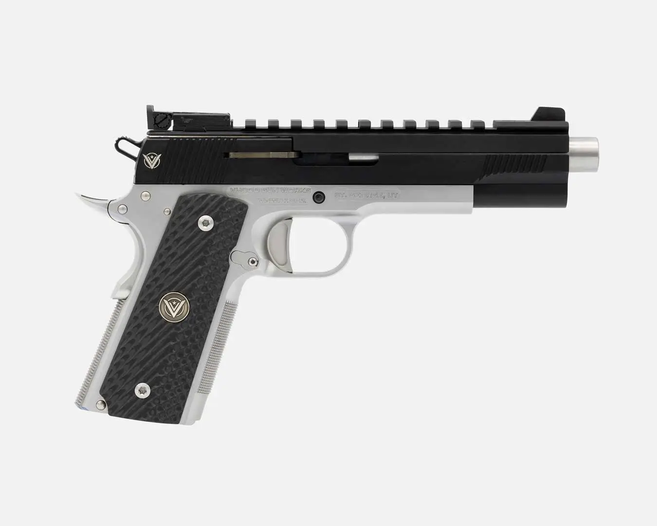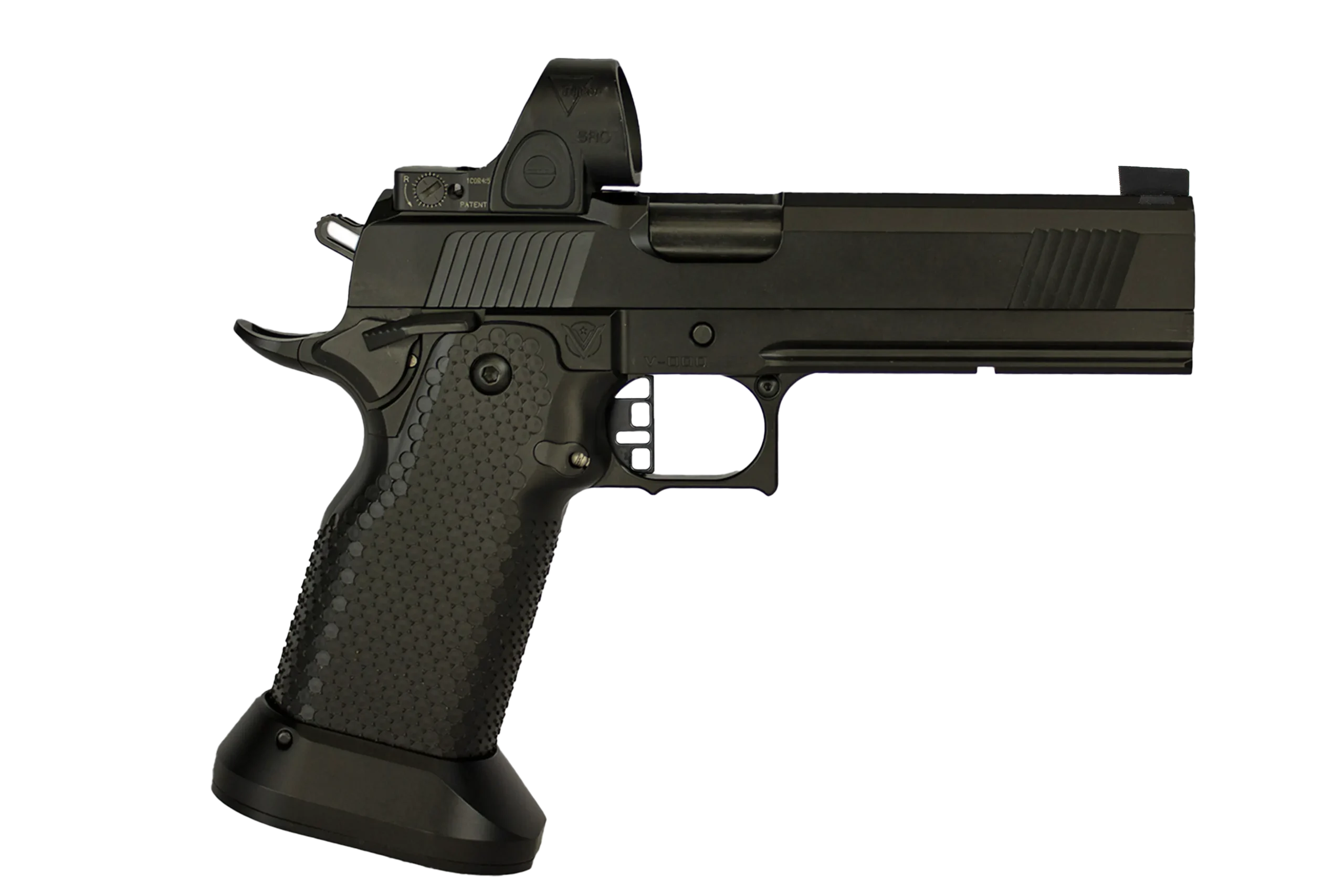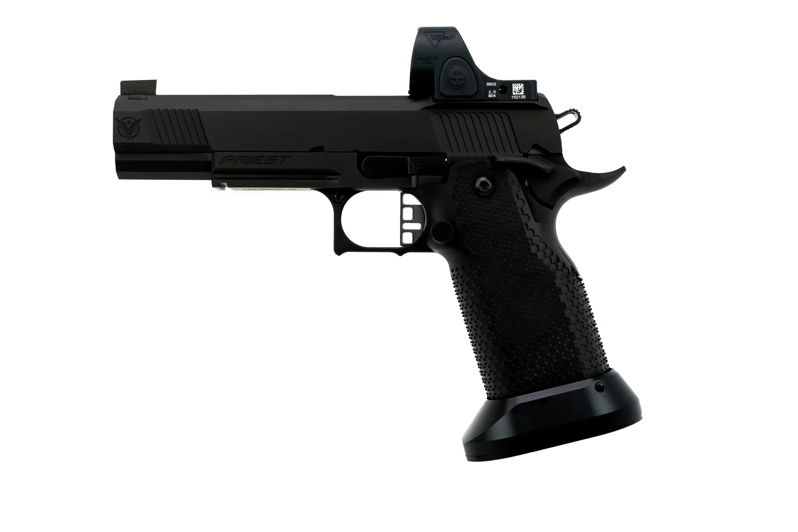 Unleash the ultimate edge with the Vudoo Priest 5” SDC Heavy. Built for unbeatable performance, this pistol features a standard-length dust cover, co-witness sights, aggressively textured stainless steel grip, and extra large magwell, delivering superior balance and accuracy with every shot. The added weight of the stainless steel grip assists with recoil absorption. Built with an unmatched premium fit and finish, the Priest 5″ SDC Heavy sets the standard in double-stack 1911s. With a contour-matching RMR footprint, competition blended safety, flush-cut barrel, and toolless guide rod for ease of takedown, this powerhouse is ready to elevate your performance to the next level. The Priest 5″ SDC Heavy is compatible with STI/SVI family of magazines giving users 22 round capacity and ships with two magazines.