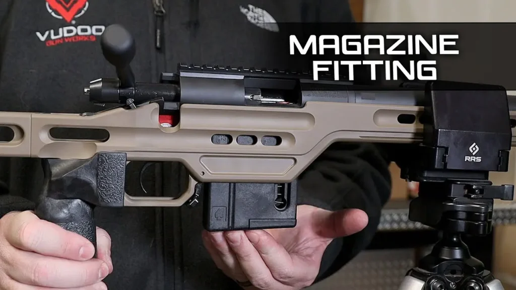 When someone purchases a barreled action they must be sure to properly fit the magazine. The feed window of rimfire is very small and care must be taken to have everything lined up perfectly. There is a wide range of variations in the magwell of various chassis and bottom metals and each system has to be tuned in its own way. We do this at the shop but when someone purchases a barreled action the fitting is on the end user. Call the shop if you have any issues tuning in your specific chassis or bottom metal.